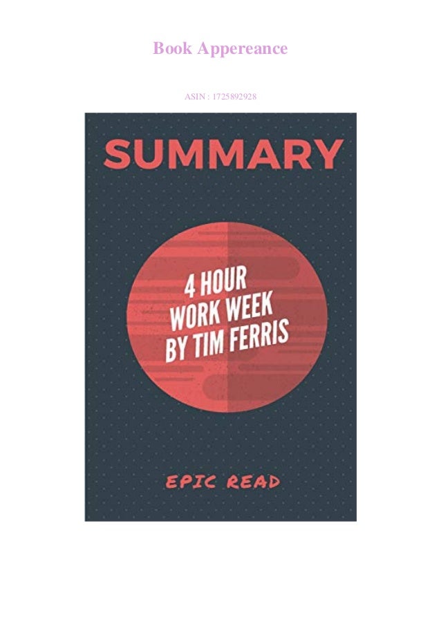 This is great news for people who work long hours. The 4-Hour Workweek Expanded and Updated PDF book is popular Business Economics book written by Timothy Ferriss. Lol1 HERES WHERE I FOUND THE PDF OF4 hour work week summary pdf at the time I downloaded mine.